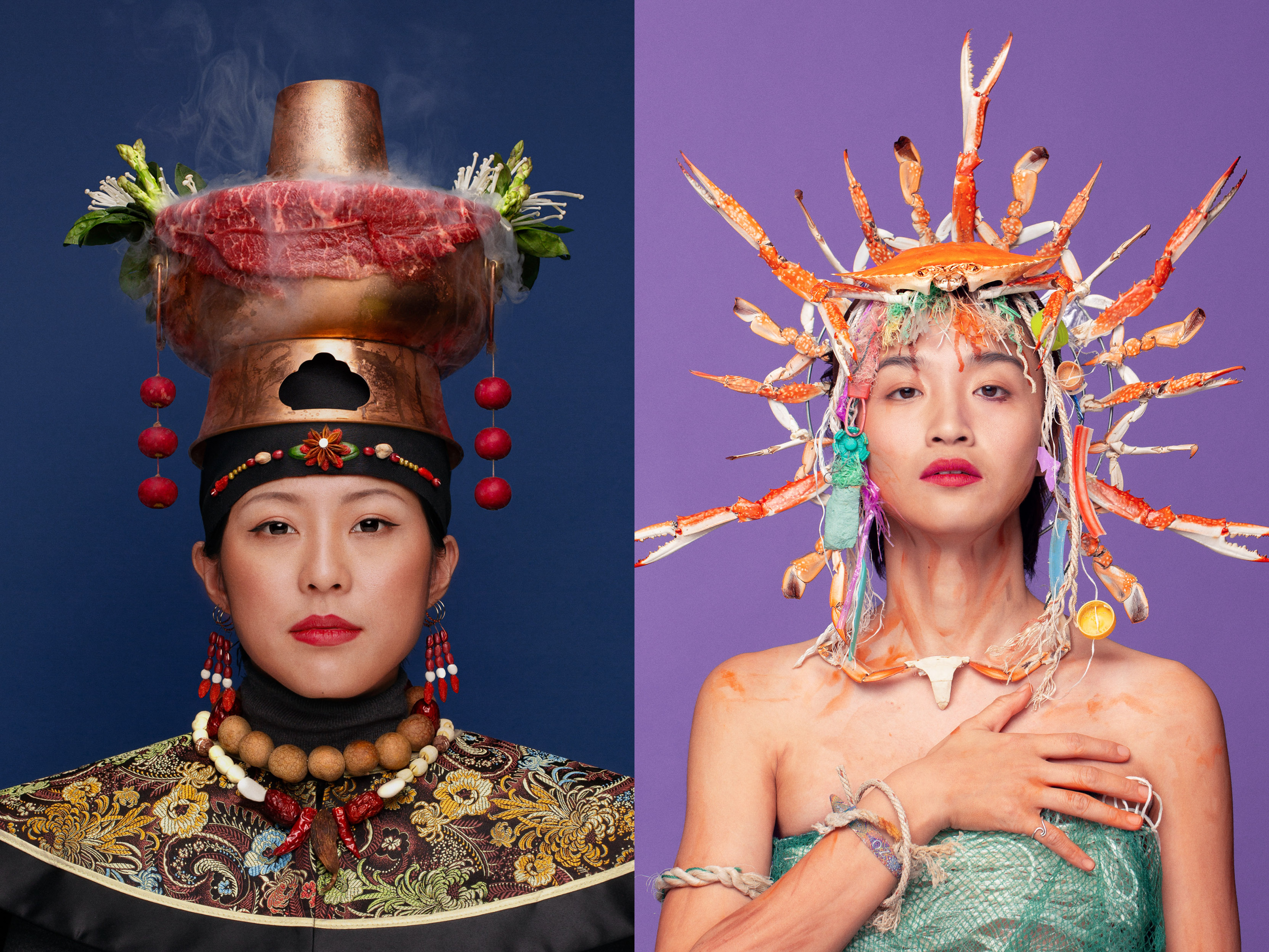 One employee from Beijing created a regal portrait with the local style of hotpot. Another employee from Qingdao created a beautiful tiara from seafood. An employee from Shanghai used the city’s famous “hairy crabs” as hairpieces.